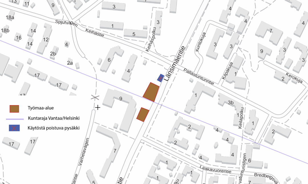 Due to the work, the Keihästie bus stop (V9118), located on the Vantaa side, will be out of service starting from 10 November 2025. The stop will reopen on Monday, 24 November 2025.